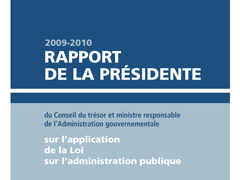 Mme Michelle Courchesne a déposé aujourd’hui à l'Assemblée nationale le Rapport de la présidente du Conseil du trésor et ministre responsable de l'Administration gouvernementale sur l'application de la Loi sur l'administration…