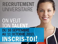 En vue d’attirer la relève dans la fonction publique, le gouvernement du Québec tient sa campagne annuelle de recrutement universitaire du 16 septembre au 11 octobre 2013. Celle-ci s’adresse principalement aux finissants qui…